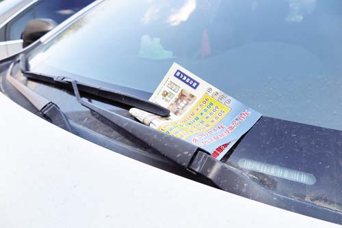 情況三:在日常生活里,我們經(jīng)常會(huì)看到一些散發(fā)銷售商品房廣告的人將廣告紙放到汽車的雨刮器下面,如果駕駛員不及時(shí)清理,會(huì)遮擋前方玻璃的視線;一旦廣告紙順勢(shì)滑入汽車前蓋下的驅(qū)動(dòng)器械里面,還可能造成不可預(yù)測(cè)的安全隱患。
