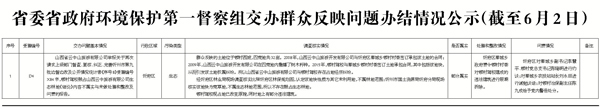2017年6月3日9時,接收省委省政府環(huán)境保護第一督察組交辦第六批群眾反映問題8件;按重要性劃分,重點群眾反映問題4件、一般群眾反映問題4件;按區(qū)域分,忻府區(qū)3件、靜樂縣1件、保德縣1件、定襄縣1件、原平市1件、神池縣1件;按污染類型分,大氣5件、噪聲2件、垃圾1件、水1件、光1件、其他1件。