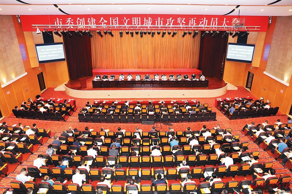 市委創(chuàng)建全國(guó)文明城市攻堅(jiān)再動(dòng)員大會(huì)會(huì)場(chǎng)。范濤 攝