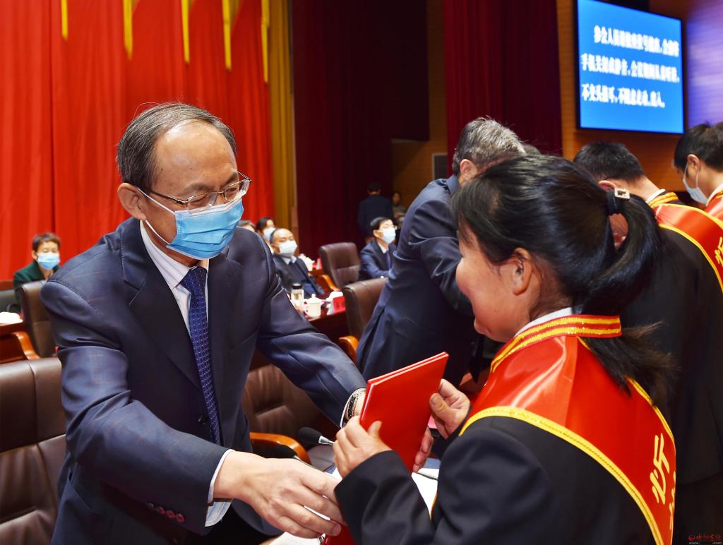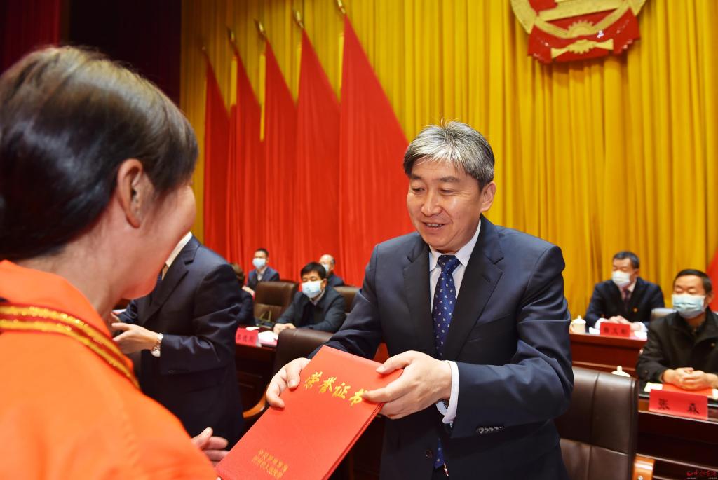 朱曉東為受表彰者頒發(fā)獎牌和榮譽證書。馮曉磊 攝