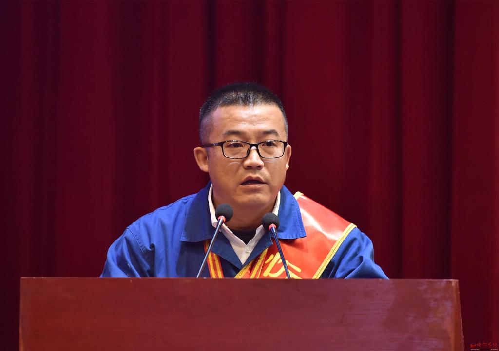 市勞模代表張杰作了表態(tài)發(fā)言。馮曉磊 攝