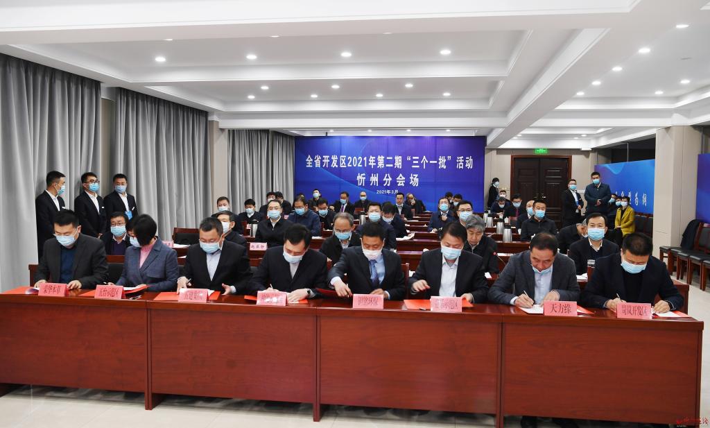 忻州分會(huì)場(chǎng)。劉紀(jì)森 攝 本報(bào)訊 (記者楊峰雷)3月22日,全省開(kāi)發(fā)區(qū)2021年第二期項(xiàng)目集中簽約一批、開(kāi)工一批、投產(chǎn)一批“三個(gè)一批”活動(dòng)通過(guò)視頻連線(xiàn)方式舉行,進(jìn)一步掀起項(xiàng)目建設(shè)高潮,我市作為分會(huì)場(chǎng)同步舉行相關(guān)活動(dòng)。市委書(shū)記鄭連生在忻州分會(huì)場(chǎng)出席并匯報(bào)工作,市委副書(shū)記、市長(zhǎng)朱曉東主持忻州分會(huì)場(chǎng)簽約儀式。市委常委、秘書(shū)長(zhǎng)崔建新,副市長(zhǎng)范建民在忻州分會(huì)場(chǎng)出席。
