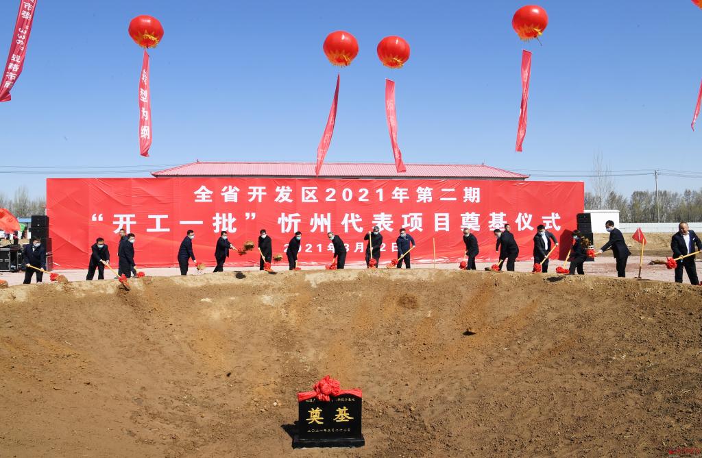 忻州代表項(xiàng)目奠基儀式現(xiàn)場(chǎng)。劉紀(jì)森 攝 “開(kāi)工一批”代表項(xiàng)目奠基儀式在定襄經(jīng)濟(jì)技術(shù)開(kāi)發(fā)區(qū)鍛造產(chǎn)業(yè)智能制造創(chuàng)新服務(wù)基地開(kāi)工項(xiàng)目現(xiàn)場(chǎng)舉行,鄭連生、朱曉東等共同為項(xiàng)目培土奠基。與會(huì)人員還到山西寶航重工有限公司觀摩今年1月底正式投產(chǎn)的年產(chǎn)10萬(wàn)噸風(fēng)電法蘭生產(chǎn)線(xiàn)建設(shè)項(xiàng)目。
