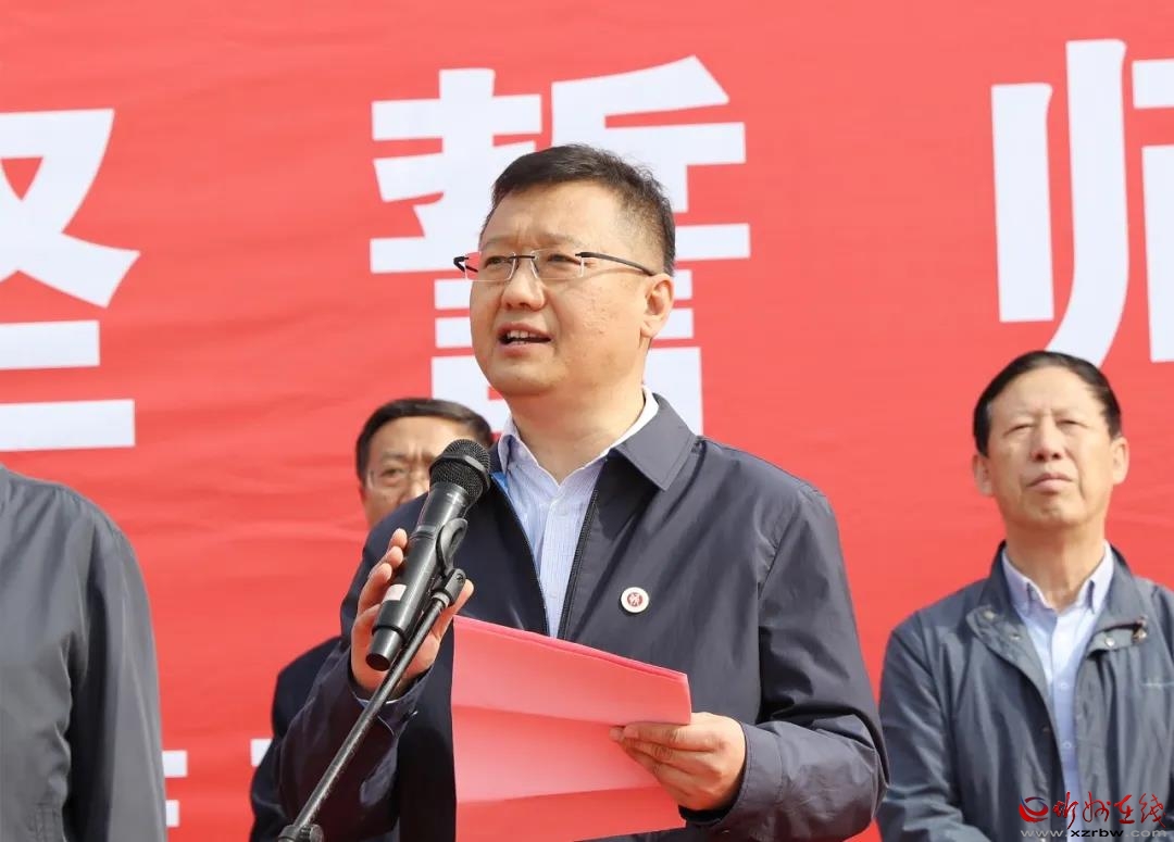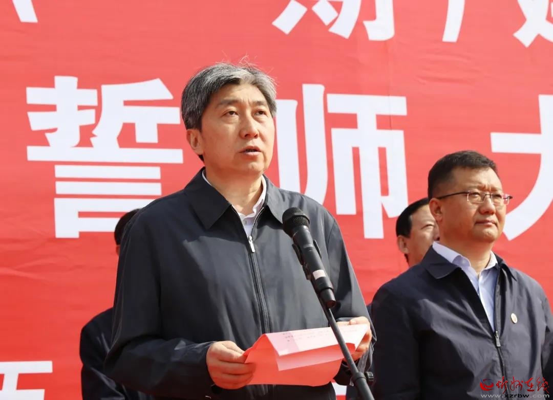 本報(bào)訊 (記者任逢春)5月11日,忻州師范學(xué)院新校區(qū)(一期)建設(shè)搬遷百日攻堅(jiān)誓師大會舉行,進(jìn)一步激勵全體參建人員凝心聚力,緊抓施工黃金期,大干100天,確保忻州師院新校區(qū)9月份前如期順利投入使用。市長朱曉東出席活動并提出工作要求。忻州師院黨委書記王軍致辭。市政府一級巡視員武憲堂主持誓師大會。忻州師院院長張虎芳,市政府副市長、秘書長郭寶厚等出席大會。市直相關(guān)部門負(fù)責(zé)人,山西建投、山西建工職工代表,忻州師院師生代表等參加大會。、