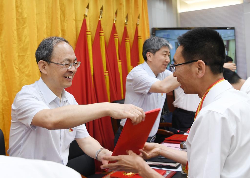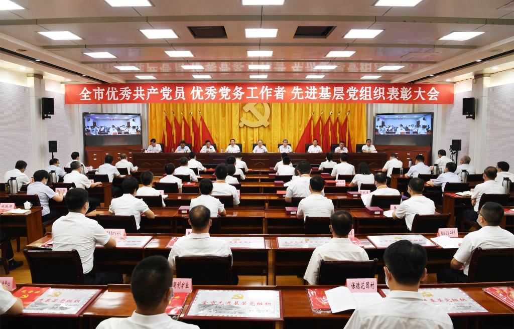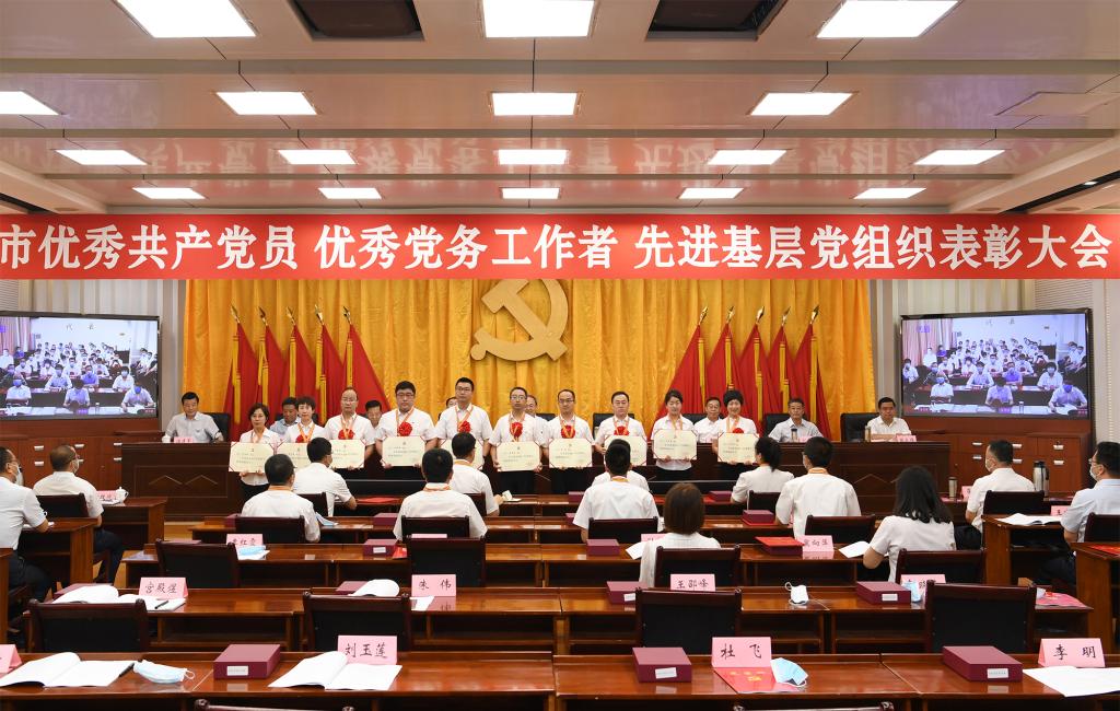 上午8時30分,大會正式開始,全體起立,奏唱國歌。來自全市各行各業(yè)、在工作中取得優(yōu)異成績的99名共產(chǎn)黨員、100名黨務工作者和100個基層黨組織,分別被授予“全市優(yōu)秀共產(chǎn)黨員”“全市優(yōu)秀黨務工作者”“全市先進基層黨組織”榮譽稱號。受到表彰的優(yōu)秀個人和先進集體代表先后上臺領獎,會場響起熱烈掌聲。