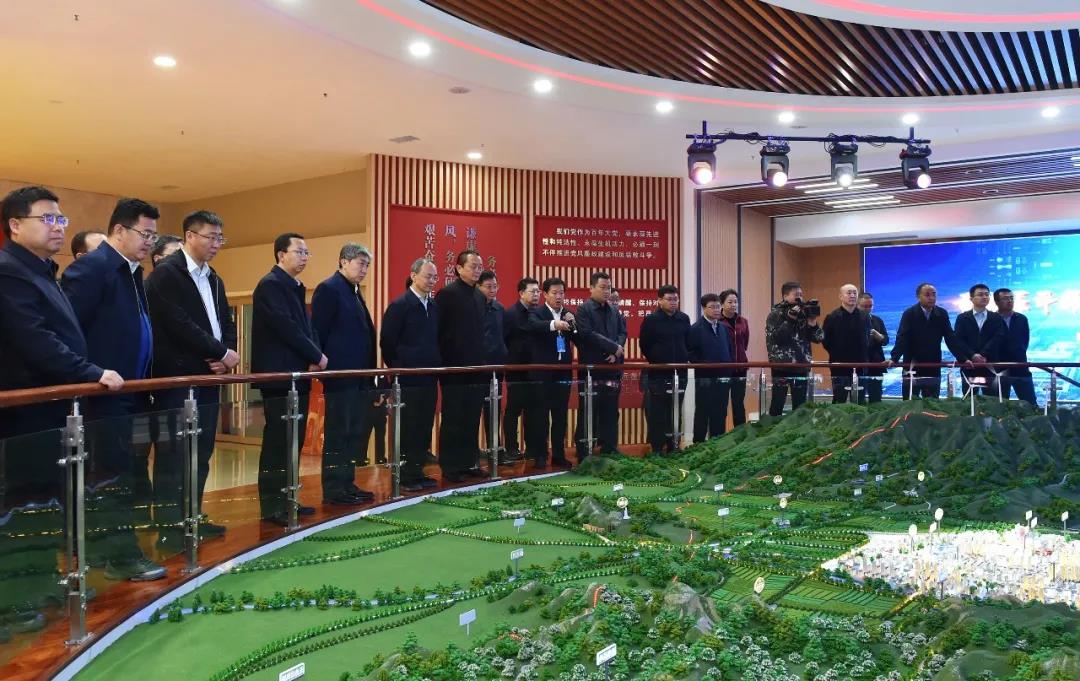 在原平經(jīng)濟(jì)技術(shù)開(kāi)發(fā)區(qū)參觀沙盤(pán)模型。馮曉磊 攝