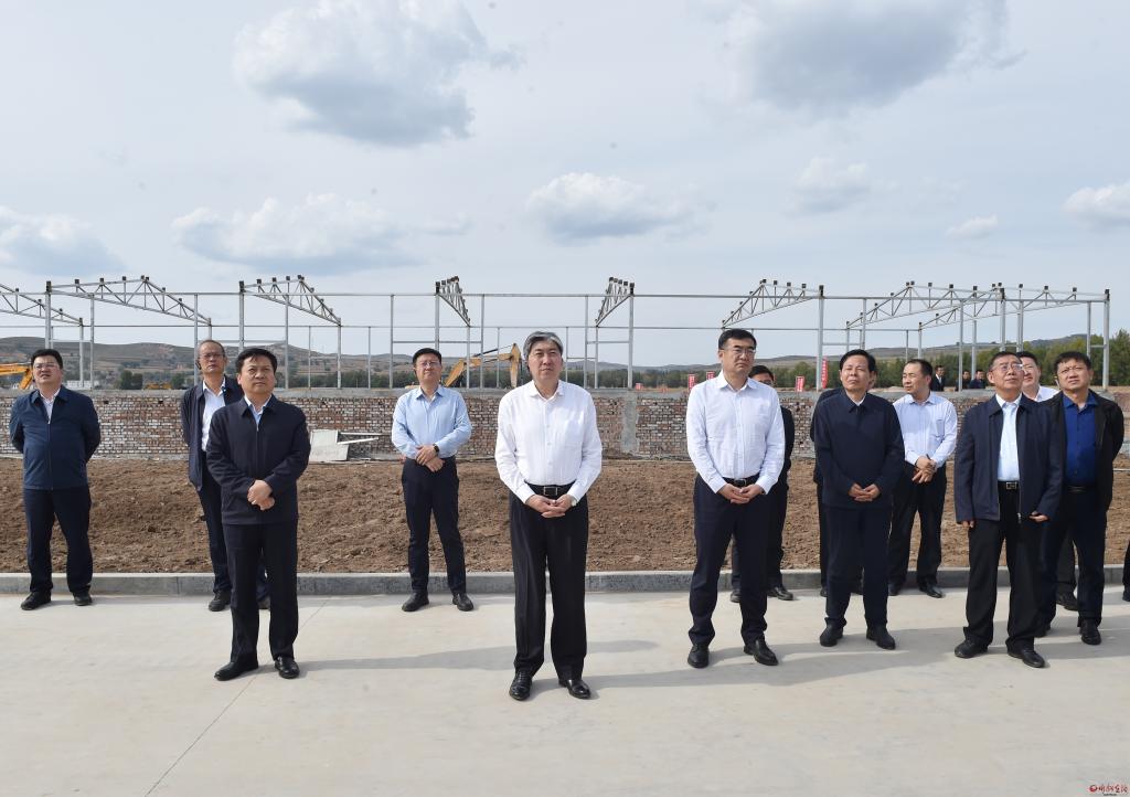 在生態(tài)養(yǎng)殖示范基地觀摩檢查萬只羊生態(tài)養(yǎng)殖項目建設(shè)情況。馮曉磊攝