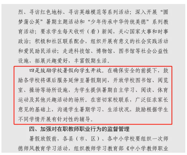 6月16日,河南省安陽市教育局提出各中小學(xué)將課后服務(wù)延伸至暑假期間。