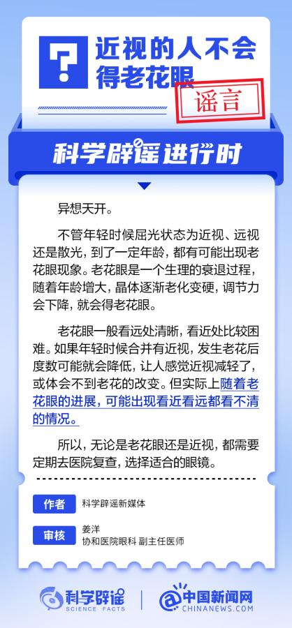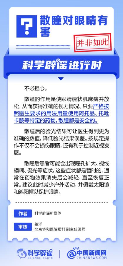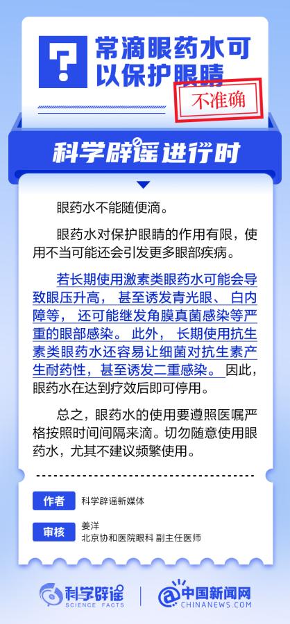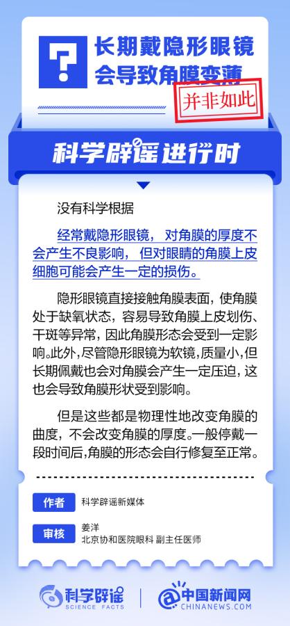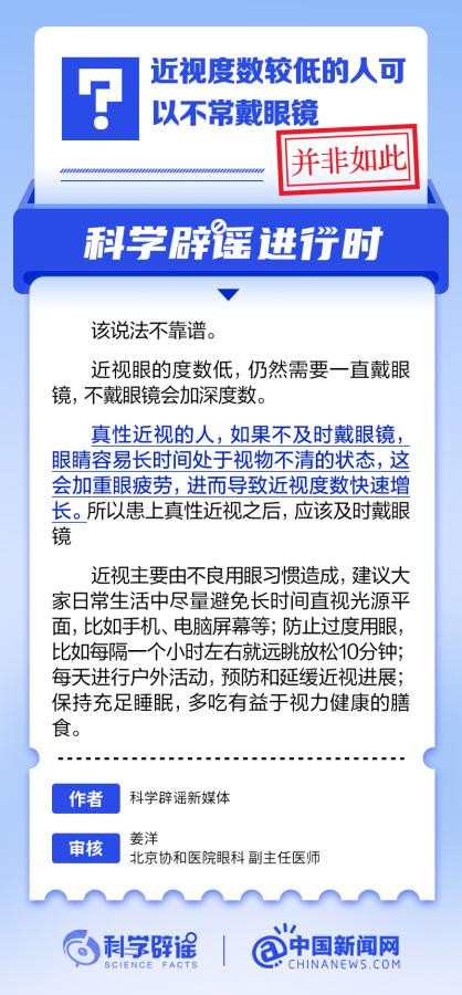 中新網6月6日電 6月6日是全國愛眼日。隨著大家越來越重視護眼,人們開始自發(fā)地從網上查找一些護眼知識,與此同時,網上也出現了很多的護眼誤區(qū)。有哪些常見的所謂“護眼知識”其實是誤區(qū)?眼鏡度數配高點好還是配低點好?詳情↓ (來源:@科學辟謠 中國新聞網微博)