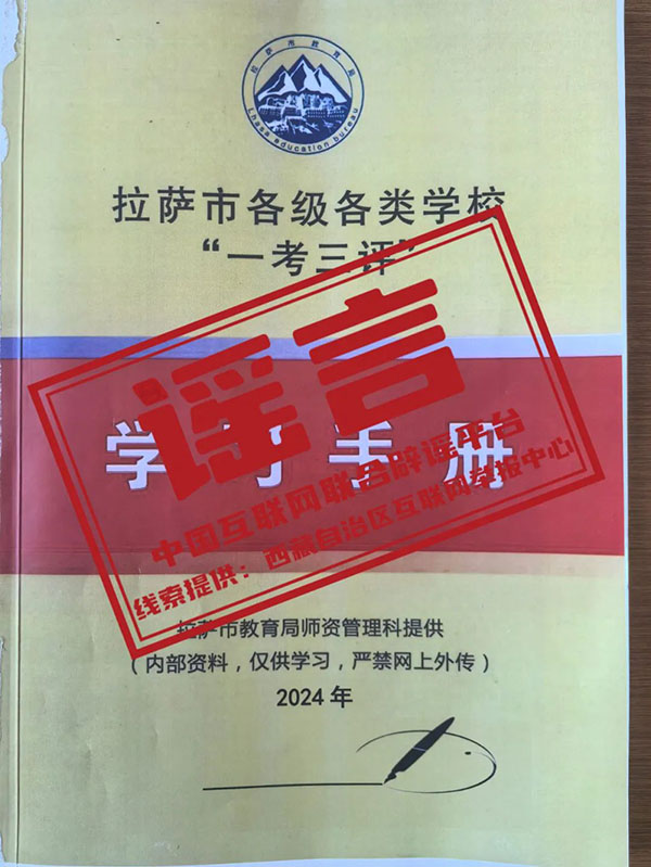 詳情:近期,西藏自治區(qū)拉薩市教育局接到教師反饋,稱有人以拉薩市教育局師資管理科名義,以50元/本的價格,售賣2024年《拉薩市各級各類學(xué)?!耙豢既u”學(xué)習(xí)手冊》。對此,拉薩市教育局發(fā)布辟謠聲明稱:我局2024年未印發(fā)“一考三評”學(xué)習(xí)手冊,未委托任何機構(gòu)和個人以任何形式向教師售賣2024年《拉薩市各級各類學(xué)?!耙豢既u”學(xué)習(xí)手冊》。請廣大教師保持高度警惕,不信謠、不傳謠、不造謠,謹防上當(dāng)受騙。(來源:“西藏舉報”微信公眾號、“拉薩教育”微信公眾號)