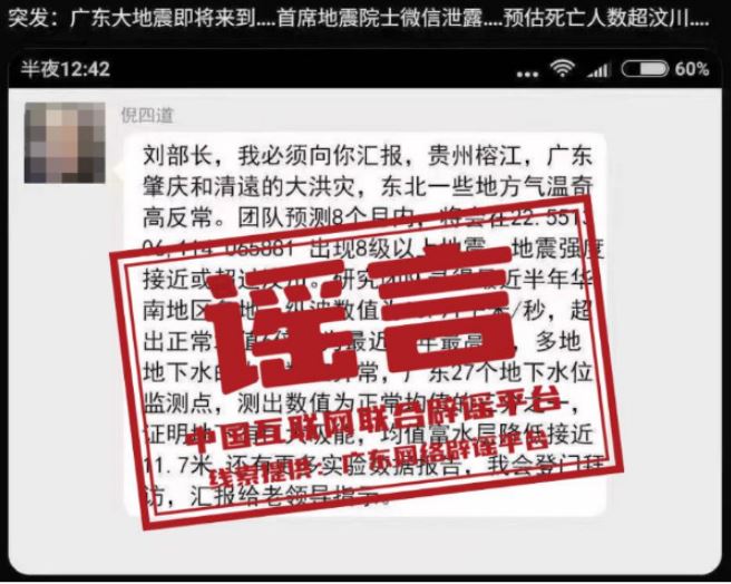 辟謠:網(wǎng)傳院士預測廣東將發(fā)生8級以上大地震?謠言!已報警