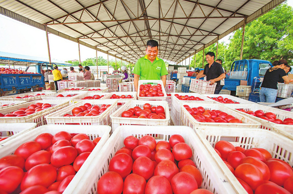 6月2日,夏縣廟前鎮(zhèn)楊村西紅柿喜迎大豐收,村民抓緊采摘包裝發(fā)往全國(guó)各地。該村已有20年種植西紅柿歷史,近年來(lái)經(jīng)過(guò)產(chǎn)業(yè)結(jié)構(gòu)調(diào)整、優(yōu)選育種,種植面積不斷擴(kuò)大,西紅柿目前暢銷北京、上海、西安等地,菜農(nóng)借此每畝可收入5000元以上。(楊建峰攝)