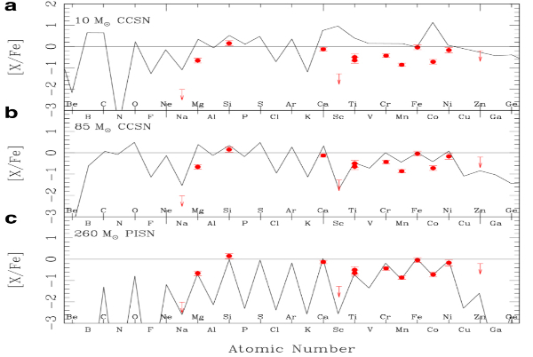 此項(xiàng)研究中,團(tuán)隊(duì)結(jié)合郭守敬望遠(yuǎn)鏡低分辨率光譜和日本昴星團(tuán)望遠(yuǎn)鏡高分辨率光譜數(shù)據(jù)發(fā)現(xiàn)了一顆化學(xué)豐度極為特殊的極貧金屬星(LAMOST J1010+2358),這顆恒星的化學(xué)豐度特征無法通過核坍縮超新星理論模型解釋,卻與260倍太陽質(zhì)量的對(duì)不穩(wěn)定超新星理論計(jì)算結(jié)果高度吻合。