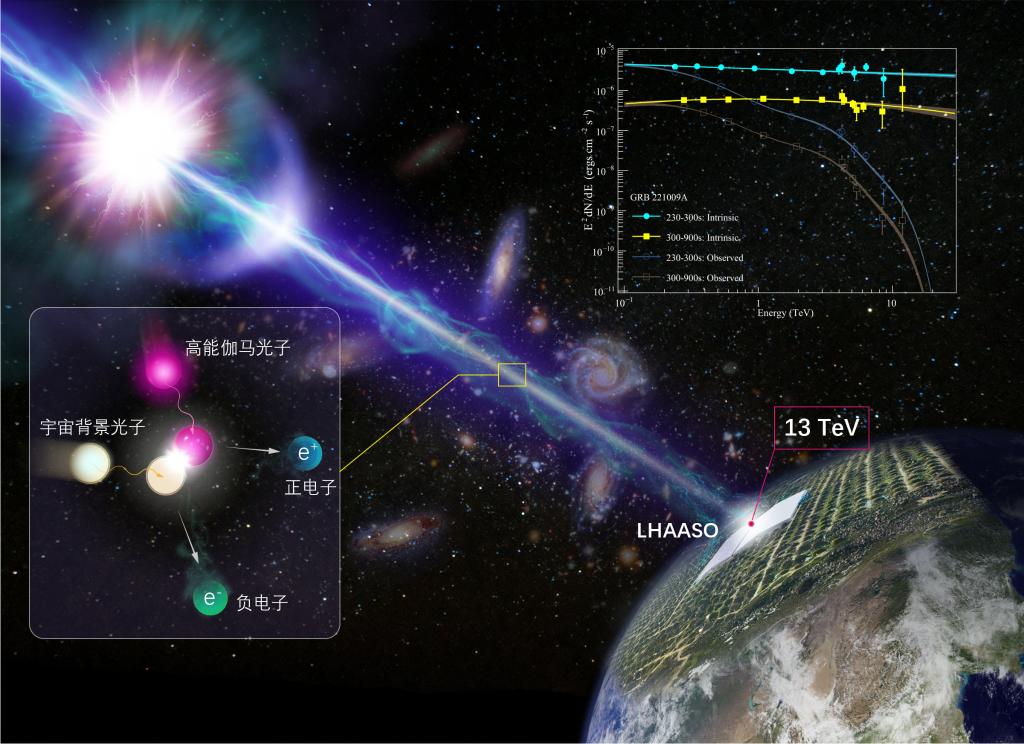 “拉索”精確測(cè)量GRB 221009A高能輻射能譜示意圖。(中國(guó)科學(xué)院高能物理研究所供圖)