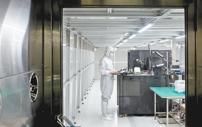 穿上防塵服,再經(jīng)過兩次噴淋除塵,記者才能進(jìn)入創(chuàng)新中心的芯片封裝測試驗證平臺。