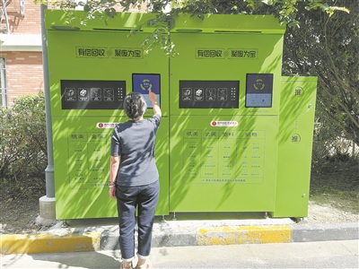 上海市民在使用智能分類(lèi)回收機(jī)。