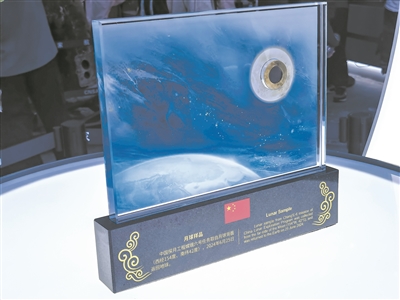 圖為嫦娥六號月壤樣品在“中國航天”展臺向公眾展出。李儀攝