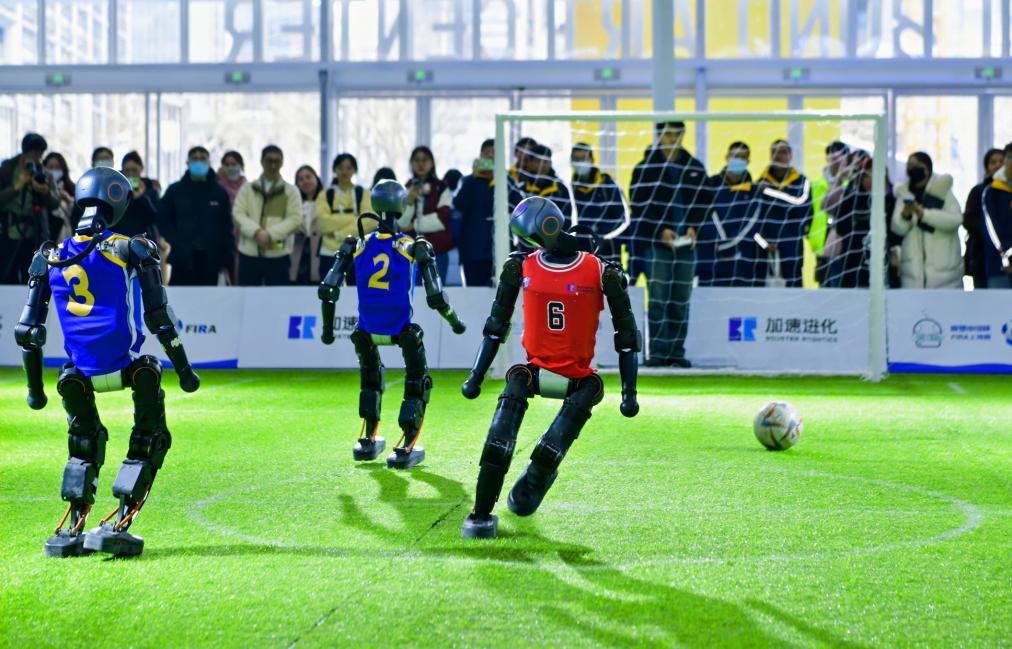 大會現(xiàn)場,機器人正在進行足球比賽。(受訪單位供圖)