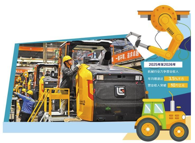《方案》提出,2025年至2026年,機(jī)械行業(yè)運行保持平穩(wěn)向好態(tài)勢,重點產(chǎn)業(yè)鏈供應(yīng)鏈韌性和安全水平持續(xù)提升,發(fā)展質(zhì)量效益邁上新臺階,力爭營業(yè)收入年均增速達(dá)到3.5%左右,營業(yè)收入突破10萬億元。中國機(jī)械工業(yè)聯(lián)合會相關(guān)負(fù)責(zé)人表示,《方案》的目標(biāo)設(shè)定,體現(xiàn)了規(guī)模與質(zhì)量并重的系統(tǒng)性思維,強(qiáng)調(diào)供給和需求兩側(cè)協(xié)同發(fā)力。