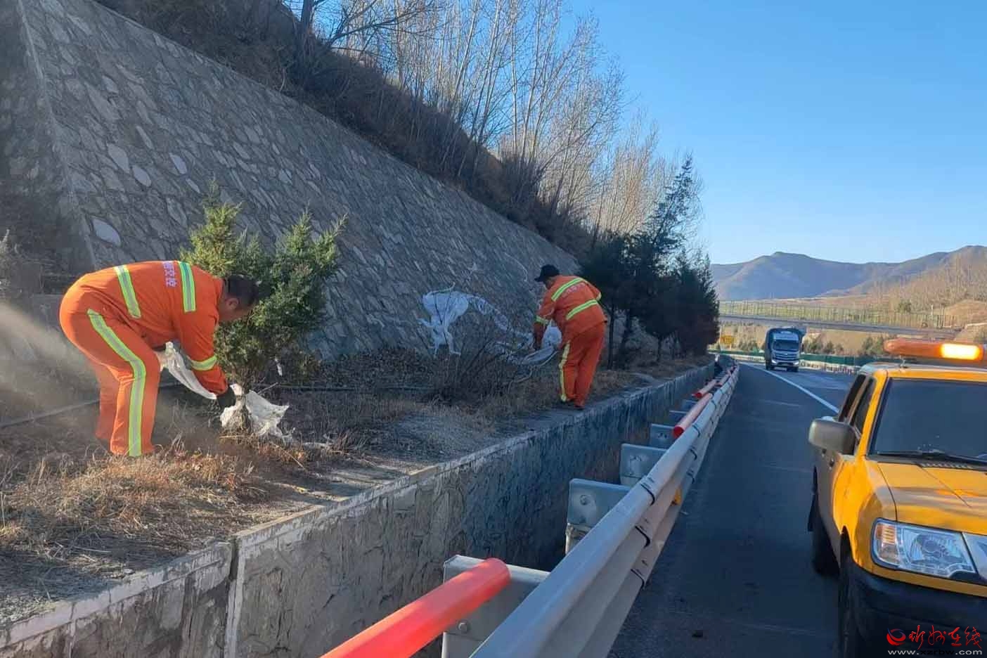 深化日常養(yǎng)護(hù),提升道路“顏值”。常態(tài)化開展路域環(huán)境整治,重點(diǎn)加強(qiáng)服務(wù)區(qū)出入口、匝道等關(guān)鍵區(qū)域治理,對路面拋灑物做到“隨見隨清”,確保路域環(huán)境整潔有序。加強(qiáng)道路綠化精細(xì)養(yǎng)護(hù),對中央分隔帶苗木進(jìn)行補(bǔ)植更新,及時(shí)清理路肩枯樹、死樹,全面提升道路綠化景觀效果與通行視覺感受。