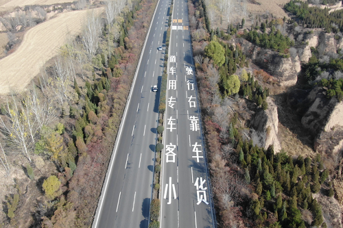 最右側(cè)車道為貨運車輛專用車道(所有貨運性質(zhì)車輛,包含藍牌貨車),限速值為80km/h,貨運車輛只能通行最右側(cè)專用車道通行,其它類型車輛不得占用;