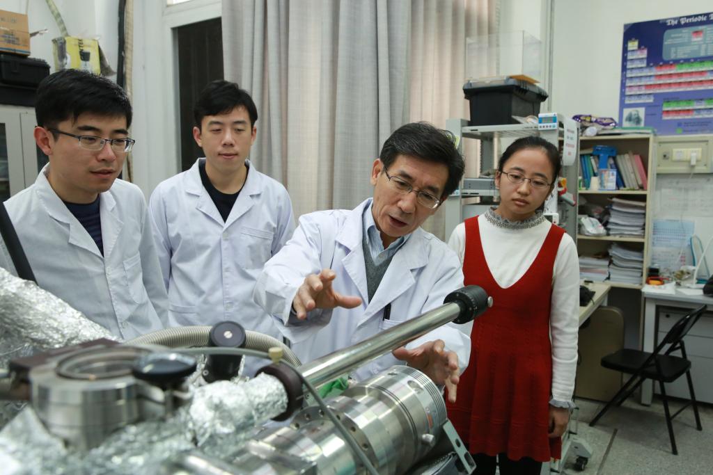 薛其坤在清華大學(xué)與研究團(tuán)隊(duì)的學(xué)生交流(2017年10月17日攝)。新華社發(fā)