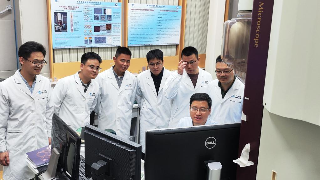 歐欣(前排右一)團(tuán)隊(duì)在實(shí)驗(yàn)室。新華社記者董雪 攝