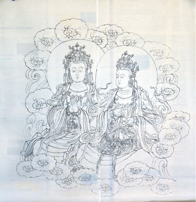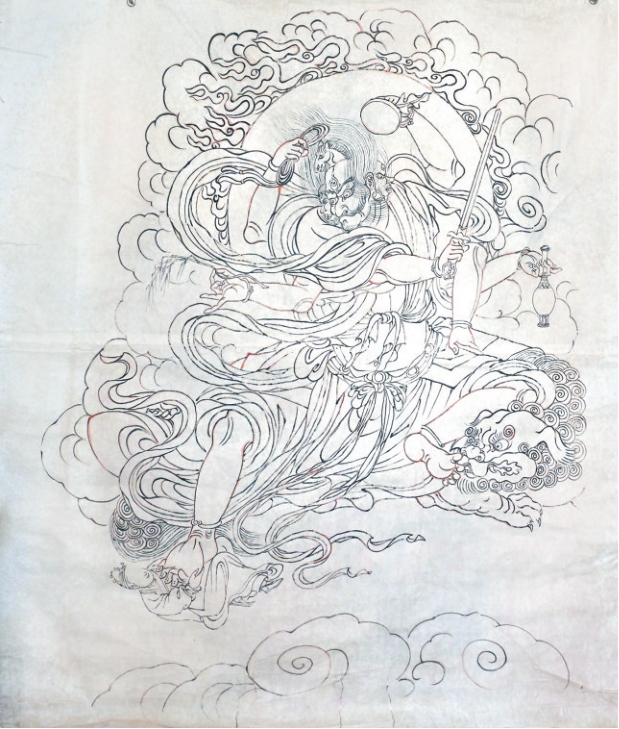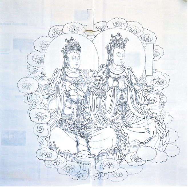 在李向東看來(lái),臨寫是為了學(xué)習(xí)而不是“復(fù)制”壁畫。面對(duì)殘破或年久漫漶不清的畫面,他從蛛絲馬跡入手反復(fù)揣摩,根據(jù)壁畫整體的線描、造型特點(diǎn),一一補(bǔ)而畫之,最后定稿。從這個(gè)意義上說(shuō),李向東也使殘破的公主寺壁畫得以復(fù)原,“補(bǔ)壁”之功不可小覷。