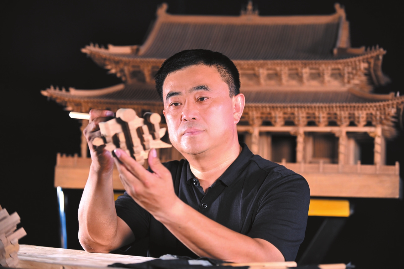 文化創(chuàng)新,讓古建文化“活”起來(lái)。劉曉辰以自身木雕藝術(shù)實(shí)踐為例,強(qiáng)調(diào)文創(chuàng)產(chǎn)品需兼顧傳統(tǒng)技藝與現(xiàn)代市場(chǎng)需求。他創(chuàng)作的應(yīng)縣木塔、佛光寺東大殿等微縮模型,不僅填補(bǔ)了國(guó)內(nèi)空白,還通過(guò)博物館、高校等渠道宣傳山西古建文化。這種“文化+產(chǎn)品”的模式,吸引游客想要“把山西寶貝帶回家”,既保護(hù)了非遺技藝,又賦予其市場(chǎng)價(jià)值,推動(dòng)了文化產(chǎn)業(yè)的實(shí)體化與市場(chǎng)化。