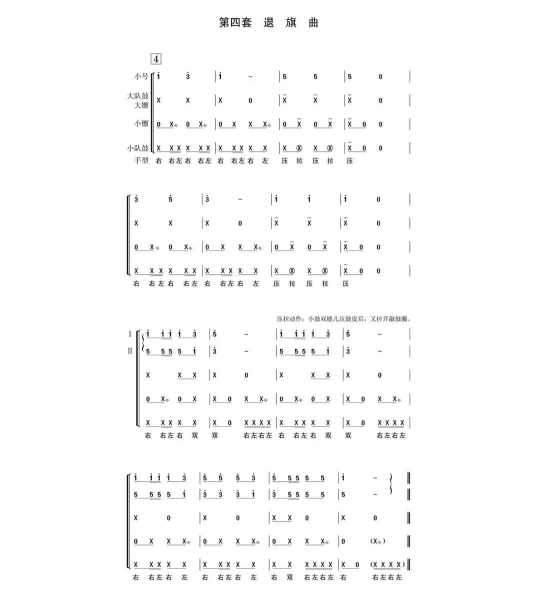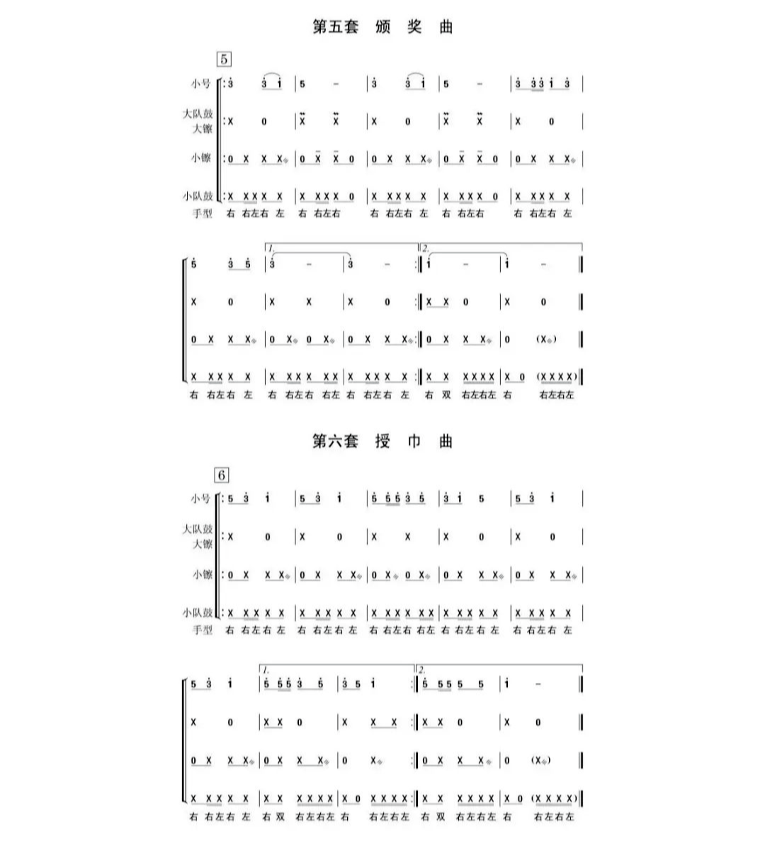為深入貫徹習(xí)近平總書記關(guān)于少年兒童和少先隊(duì)工作的重要論述,全面落實(shí)《中共中央關(guān)于全面加強(qiáng)新時(shí)代少先隊(duì)工作的意見》有關(guān)要求,進(jìn)一步加強(qiáng)校內(nèi)外少先隊(duì)鼓號(hào)隊(duì)規(guī)范化建設(shè),更好地發(fā)揮少先隊(duì)鼓號(hào)隊(duì)增強(qiáng)少先隊(duì)員光榮感和組織歸屬感、活躍少先隊(duì)組織生活的作用,根據(jù)《中國(guó)共產(chǎn)主義青年團(tuán)章程》、《中國(guó)少年先鋒隊(duì)章程》和團(tuán)內(nèi)有關(guān)規(guī)定,制定本標(biāo)準(zhǔn)。 一、性質(zhì)、用途和建設(shè)主體 (一) 性質(zhì)。少先隊(duì)鼓號(hào)隊(duì)是少先隊(duì)組織文化的特有組成部分,是少先隊(duì)開展組織教育、自主教育、實(shí)踐教育的重要載體。少先隊(duì)鼓號(hào)隊(duì)對(duì)于增強(qiáng)少先隊(duì)員光榮感和組織歸屬感,活躍組織生活,服務(wù)少先隊(duì)員健康成長(zhǎng),增強(qiáng)少先隊(duì)活動(dòng)的儀式感,具有重要作用。 (二)用途。少先隊(duì)鼓號(hào)隊(duì)主要用于少先隊(duì)的集會(huì)和活動(dòng),可以用于黨委、政府及共青團(tuán)重要儀式活動(dòng)。少先隊(duì)鼓號(hào)隊(duì)不得用于與青少年和少先隊(duì)工作無(wú)關(guān)的會(huì)議或者場(chǎng)合,不得用于任何商業(yè)活動(dòng)、個(gè)人行為。如需要參與其他重要社會(huì)活動(dòng),必須經(jīng)縣級(jí)以上少工委批準(zhǔn)。 (三)建設(shè)主體。小學(xué)、初中、一貫制學(xué)校、完全中學(xué)必須建立少先隊(duì)鼓號(hào)隊(duì),鄉(xiāng)村小規(guī)模學(xué)??山Y(jié)合實(shí)際建立。鼓勵(lì)在街道(鄉(xiāng)鎮(zhèn))、社區(qū)(村)、青少年宮、青年之家等校外場(chǎng)所的少先隊(duì)組織建立鼓號(hào)隊(duì)。 二、配置 少先隊(duì)鼓號(hào)隊(duì)一般以大隊(duì)為單位組建,樂(lè)器配置主要包括指揮旗(杖)、小號(hào)(或者少年號(hào))、大隊(duì)鼓、小隊(duì)鼓、大镲、小镲,可以根據(jù)實(shí)際演奏需要適當(dāng)增加樂(lè)器種類。根據(jù)聲部音量配比合理、隊(duì)列整齊并便于設(shè)計(jì)隊(duì)形的原則,一般編制如下: 大型鼓號(hào)隊(duì)編制66人,指揮、副指揮各1人,小號(hào)28人,大隊(duì)鼓8人,小隊(duì)鼓16人,大镲8人,小镲4人。 中型鼓號(hào)隊(duì)編制33人,指揮1人,其他編制是大型鼓號(hào)隊(duì)的二分之一。 小型鼓號(hào)隊(duì)編制17人,指揮1人,其他編制是中型鼓號(hào)隊(duì)的二分之一。 演奏隊(duì)形可以分為橫隊(duì)、縱隊(duì)、八字型編隊(duì)等,可以配備旗手、護(hù)旗手。 三、曲譜使用 少先隊(duì)鼓號(hào)隊(duì)總譜除間奏鼓外共10套曲目,包括:開場(chǎng)曲、進(jìn)行曲、出旗曲、退旗曲、頒獎(jiǎng)曲、授巾曲、檢閱曲、宣誓曲、迎賓曲、歡送曲。 四、器材規(guī)格及演奏方法 (一)小號(hào) 規(guī)格:一般為號(hào)長(zhǎng)485mm,號(hào)口直徑125mm,號(hào)咀長(zhǎng)87mm,降B調(diào),帶有3個(gè)活塞鍵。 演奏方法:雙手持號(hào)位于胸前,號(hào)口朝下,演奏時(shí)號(hào)與地面平行。 (二)大隊(duì)鼓 規(guī)格:一般為直徑580mm,鼓寬285mm。 演奏方法: 1.使用背帶或者背架將大隊(duì)鼓掛在胸前,鼓上端與上衣第二紐扣相平。 2.右手持大鼓槌,擊鼓方法有斜線擊鼓法和垂直擊鼓法等。 (三)小隊(duì)鼓 規(guī)格:一般為直徑370mm,鼓寬127mm。 演奏方法: 1.背帶式小隊(duì)鼓掛在身體右側(cè),背架式小隊(duì)鼓掛在身體前方,鼓掛鉤與上衣第四紐扣相平。 2.雙手持小鼓槌,左手掌心向上、右手掌心向下,呈空握拳狀,演奏方法包括左右手交替擊鼓、雙手一起擊鼓、兩根鼓棒相擊等。 (四)大镲 規(guī)格:一般為直徑260mm,厚度1mm,鍋帽直徑85mm,高16mm。 演奏方法:雙手持镲位于胸前,镲中心與上衣第三紐扣相平,镲面稍向左傾,大小臂夾角約45度,互相敲擊演奏。 (五)小镲 規(guī)格:一般為直徑150mm,厚度1.6mm,鍋帽直徑55mm,高20mm。 演奏方法:直立持镲位于胸前,中心與上衣第三紐扣相平,大小臂夾角約60度,互相敲擊演奏。 (六)指揮旗(杖) 規(guī)格:指揮旗(杖)桿長(zhǎng)1150mm左右。 使用方法: 1.右手持旗(杖),指揮動(dòng)作包括持樂(lè)器、預(yù)備、起式、運(yùn)行、收式、下樂(lè)器,左手輔助指令,表示演奏程序。 2.指揮旗固定卷在桿上,當(dāng)需用旗幟指揮時(shí),可以將旗幟展開。 五、服裝 (一)少先隊(duì)鼓號(hào)隊(duì)服裝應(yīng)當(dāng)體現(xiàn)少先隊(duì)組織特色,鼓號(hào)隊(duì)演奏時(shí)應(yīng)當(dāng)佩戴紅領(lǐng)巾和隊(duì)委標(biāo)志。 (二)服裝款式、顏色搭配應(yīng)當(dāng)彰顯少年兒童活潑可愛的天性,穿著方式簡(jiǎn)潔方便,便于持樂(lè)器行進(jìn)演奏。帽子、鞋子樣式顏色統(tǒng)一,可以佩戴白色手套。 (三)指揮著裝應(yīng)當(dāng)與隊(duì)員有明顯區(qū)別。 六、少先隊(duì)標(biāo)志標(biāo)識(shí)使用 (一)在指揮旗(杖)、樂(lè)器上可以懸掛使用裝飾旗,裝飾旗上的少先隊(duì)隊(duì)徽或者星星火炬圖案要規(guī)范。 (二)不得在鼓面等易磨損部位印制少先隊(duì)隊(duì)徽。 (三)指揮旗(杖)主體一般為金色或金黃色,如指揮旗(杖)頂部為五角星,應(yīng)當(dāng)與少先隊(duì)隊(duì)徽上的五角星形制相同。 七、經(jīng)費(fèi)