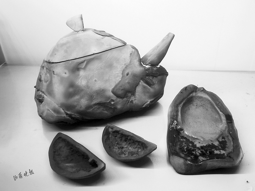 日前,在陽泉市古生物化石保護(hù)協(xié)會(huì)的會(huì)員線下交流活動(dòng)中,71歲的奇石愛好者任富材將家中收藏的大量觀賞石標(biāo)本展示出來。他收藏陽泉觀賞石及化石已有50余年,他的收藏包含各種地質(zhì)巖石標(biāo)本:靈璧石、木魚石、煤核石、木化石、海螺化石、方解石、瑪瑙石、鈣質(zhì)結(jié)核等,琳瑯滿目。在這些藏品中,一種褐鐵礦結(jié)核——木魚石,頗為引人注目,這些石頭被任富材制作成了硯臺(tái)、茶壺、石函、擺件等精美工藝品。任富材說,在《山西中藥典》一書中記載的禹余糧,其實(shí)就是木魚石,別名又叫“太一余糧”“石中黃子”,俗稱“還魂石”“鳳凰蛋”,有著吉祥如意的寓意,被民間爭搶收藏。眾多礦石愛好者對(duì)任富材的這些木魚石藏品產(chǎn)生了濃厚的興趣,也對(duì)陽泉本地木魚石的儲(chǔ)量、特性、成分等打起了問號(hào)。