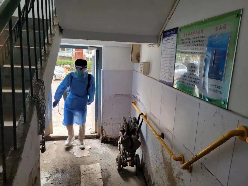 “益行志愿服務(wù)隊(duì)從8月4日17點(diǎn)下班后開始組織救災(zāi)工作,到凌晨24點(diǎn)充分準(zhǔn)備完畢??傆?jì)出動9輛汽車,志愿者們對社區(qū)內(nèi)的一樓單元門口、垃圾分類驛站、居民家里、黨群活動中心、居委會物資庫、社區(qū)花園內(nèi)和道路,開展清理淤泥和清洗路面工作?!睆垈惤榻B道。