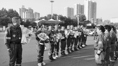 太原藍(lán)天應(yīng)急救援隊隊員回到太原。