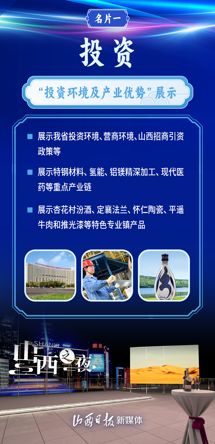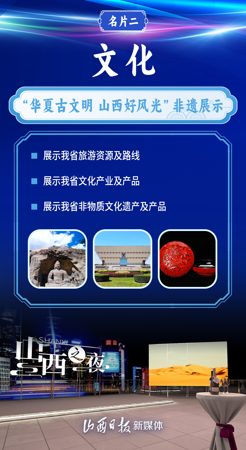 在第六屆中國國際進口博覽會開幕之際,“山西之夜”活動將于11月5日晚在上海復(fù)星藝術(shù)中心舉辦?!吧轿髦埂鄙?,將重點推出三大展覽展示,這也是開放山西向世界介紹自己的三張名片。