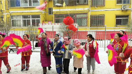 隨著喜慶熱鬧的音樂響起,活動正式開始。舞蹈《豬八戒背媳婦》《燈籠舞》《扇子舞》等精彩的節(jié)目在居民面前輪番上演,博得了現(xiàn)場觀眾熱烈的掌聲。