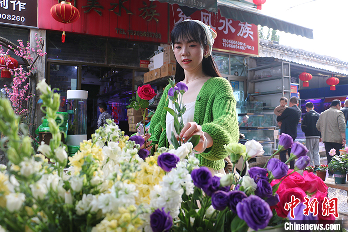 袁媛在合肥市裕豐花鳥魚蟲市場開花店已有十年,銷量一直穩(wěn)中上漲。24日,她一邊忙著和顧客交談,一邊和記者聊著生意經(jīng)?!?月開始進入花市旺季,節(jié)假日和日常、線上線下的銷量都很好。我們隨行就市,批發(fā)、零售都做,零售買得多的還是年輕人。”