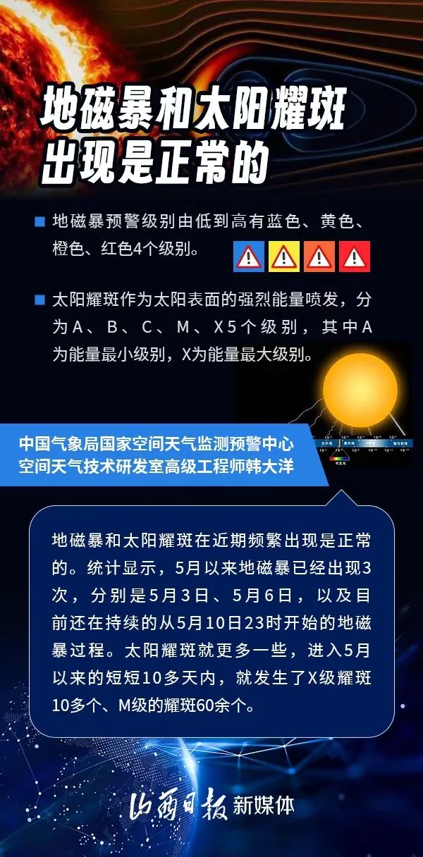 近日,我國多地出現(xiàn)極光現(xiàn)象,引起人們廣泛關(guān)注。極光現(xiàn)象與地磁暴活動(dòng)密切相關(guān)。地磁暴以及近期頻繁出現(xiàn)的太陽耀斑為什么發(fā)生?對人們的生活有影響嗎?下面一起來看專家解讀。