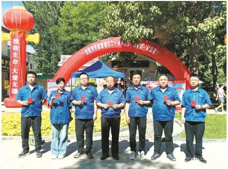 忻州市市政公司員工集體獻(xiàn)血后合影留念。 本報(bào)記者 張志遠(yuǎn)攝