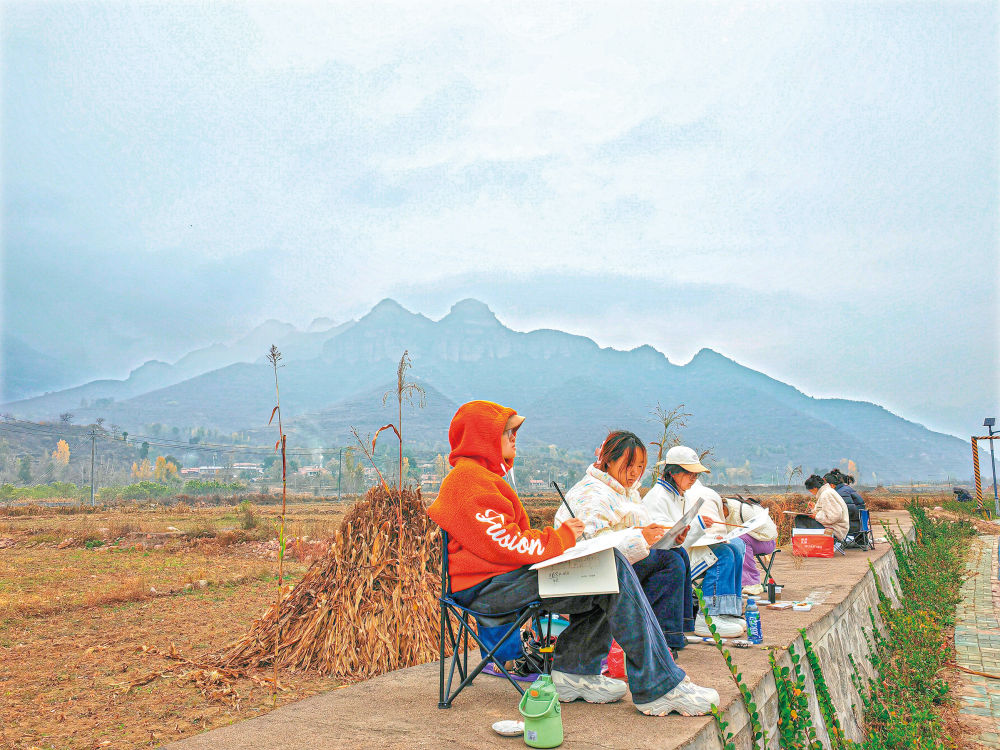 雖然已時近立冬,但來自晉中學院的一百多名師生仍堅持每天外出寫生?!斑@里是太行山中段最雄美的地方,來到這里可以讓學生們接受大自然的洗禮,同時感受地方文化,讓他們積累創(chuàng)作素材的同時了解農(nóng)村、熱愛農(nóng)村?!睍x中學院國畫老師孟冠華說。