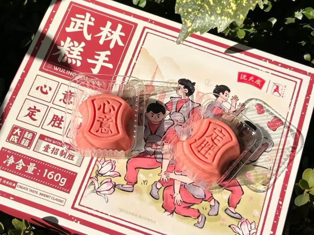 非遺傳承人們也不再滿足于“守住老味道”,更在努力跨界融合、推陳出新。沈大成最新推出的“武林糕手”心意定勝糕,內(nèi)里仍是銀錠造型、香甜軟糯的糕點(diǎn),外包裝設(shè)計(jì)則引入了國家級(jí)非遺項(xiàng)目盧氏心意拳的招式形象,受到消費(fèi)者的歡迎。