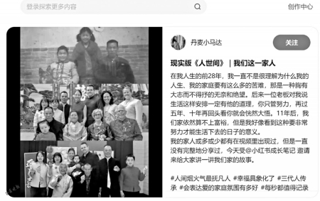韓慶(小紅書實名認證名),現(xiàn)居丹麥,受邀分享了她的家庭故事,打造了現(xiàn)實版的《人世間》。