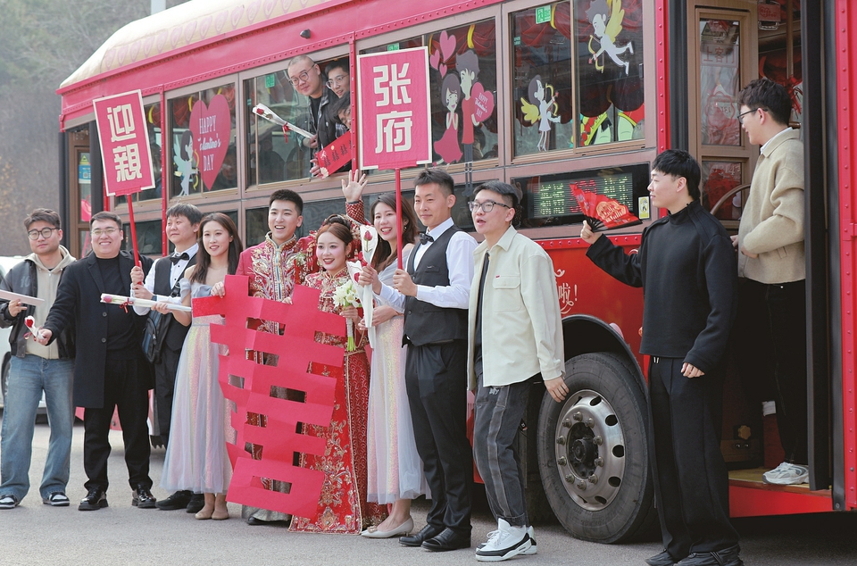公交當(dāng)婚車成為一種時(shí)尚創(chuàng)新的婚禮形式