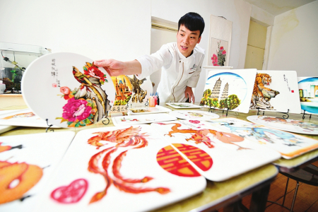 在阿峰工作室內(nèi),擺放著很多這幾年他精心制作的果醬畫作品,在方形和圓形的瓷盤上,有風(fēng)景、動(dòng)物、建筑……每一幅都栩栩如生,不僅細(xì)膩美觀,還可食用。“平日里,我除了工作,最喜歡在安靜的時(shí)候琢磨,有時(shí)為了一個(gè)作品要花上五六個(gè)小時(shí)來創(chuàng)作。果醬畫讓我大開眼界,不僅能畫出流暢的線條,還能畫出五彩斑斕的世界,更讓我找到了人生的目標(biāo)。”阿峰介紹。