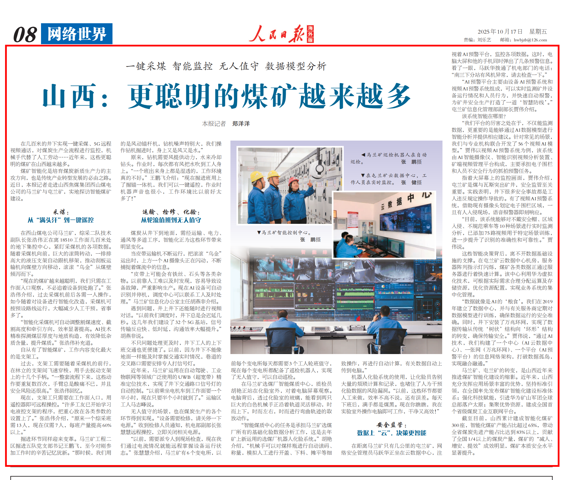 人民日?qǐng)?bào)看山西 | 更聰明的煤礦越來(lái)越多