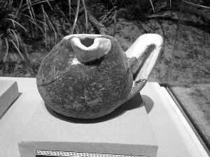 高淳博物館的二樓是一個(gè)“通史”展,從6300年前薛城聚落開始說(shuō)起。彩陶罐、黑斑玉鐲、黑陶杯、螺螄、貝殼……這些“寶貝”都是從高淳薛城遺址出土的,它們已經(jīng)有6300歲了。這些陶器,造型優(yōu)美,尤其是黑陶杯,造型堪稱時(shí)尚,杯口還特意設(shè)置了喝水的凹槽。