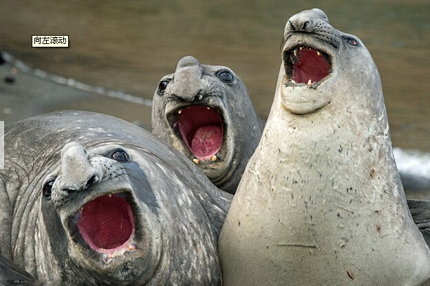 一群象海豹扯開嗓子拼唱功的圖片真是滑稽極了!英國《每日郵報(bào)》發(fā)布了一組有趣的圖片,記錄了象海豹們頭微微向后仰,張大嘴巴,試圖模仿明星們的可愛畫面。