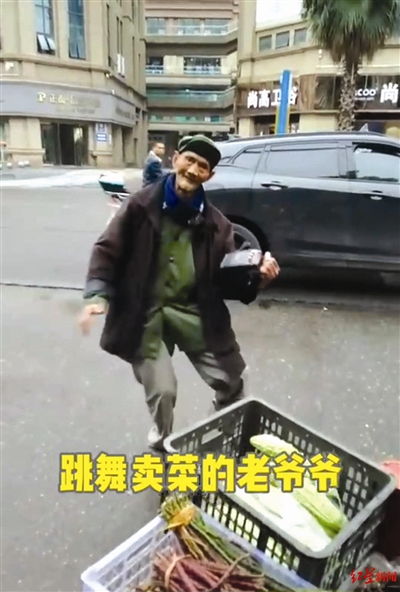 前幾天,一位爺爺一邊賣菜,一邊手拿音響,翩翩起舞,搖頭晃腦,臉上掛著可愛的笑容,十分享受。視頻上網(wǎng)后,引發(fā)大家關(guān)注,許多人為老人家樂觀的心態(tài)點(diǎn)贊。