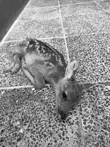 6月25日,橫河派出所接到轄區(qū)受益村村民報警稱,在地頭看到一只身材嬌小的“梅花鹿”,由于其無法站立,于是向派出所民警求助。得知情況后,橫河派出所民警立即聯(lián)系森林公安民警一同趕往現(xiàn)場查看。經(jīng)仔細觀瞧,眼前的“梅花鹿”其實是國家二級保護動物“狍子”。狍子身材嬌小,尚在哺乳期。然而,民警在附近找了一圈,也沒發(fā)現(xiàn)小狍子“媽媽”的身影,于是便小心翼翼地將其帶回派出所。