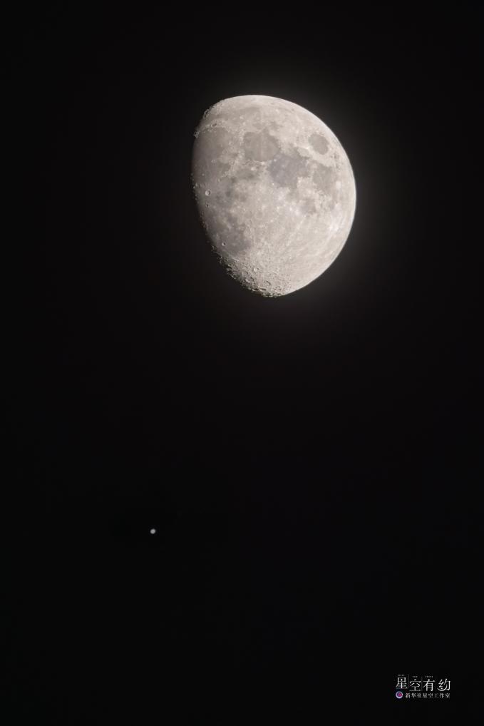 天津星空攝影愛(ài)好者劉慶2023年12月22日在天津西青區(qū)拍攝的木星伴月。(本人供圖)