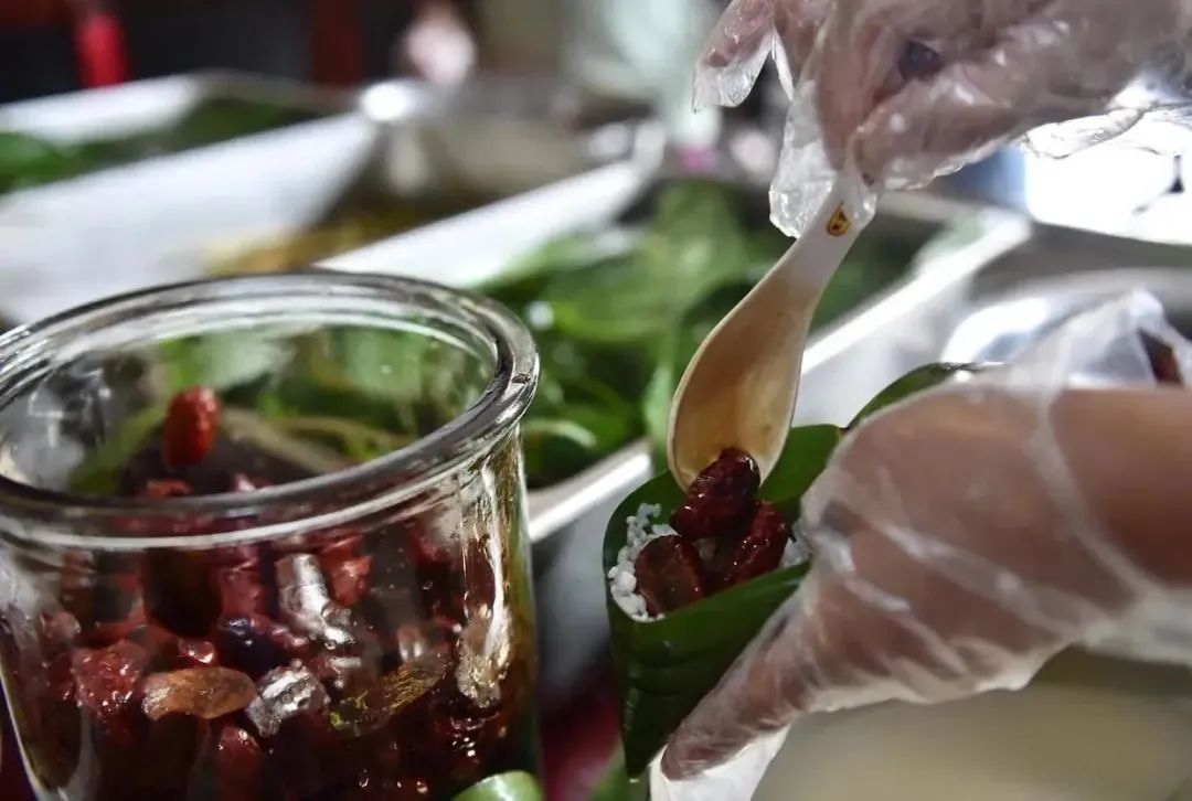 一是食材出“粽”。粽葉葉寬、色濃、味香,糯米粘糯拉絲,蜜棗更是選自原生態(tài)黃河灘棗,清洗去核后用70%的棗花蜜和30%的白砂糖浸泡而成,保持了紅棗原有的營養(yǎng)成分,口感獨特。